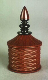 Bloodwood box with 5-wave pattern and V-fluted and cove-fluted roof. African Blackwood finial with bloodwood finial tip in spear shape.