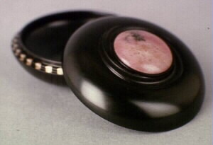 12-petal multi-layered pattern in pink veneer and blackwood.