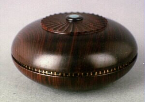 turquoise in a brass tube. Inside of lid has a rose pattern, see details-2.