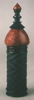 This perfume atomizer bottle is made of African Blackwood for the body with a top and