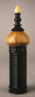 This perfume atomizer bottle is made of African Blackwood for the body with Olivewood top