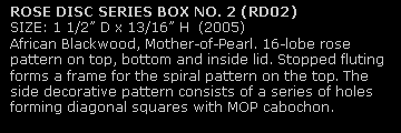 have rose engine patterns on top and inside the lids, a small rose insignia