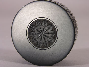 have rose engine patterns on top and inside the lids, a small rose insignia